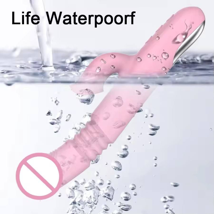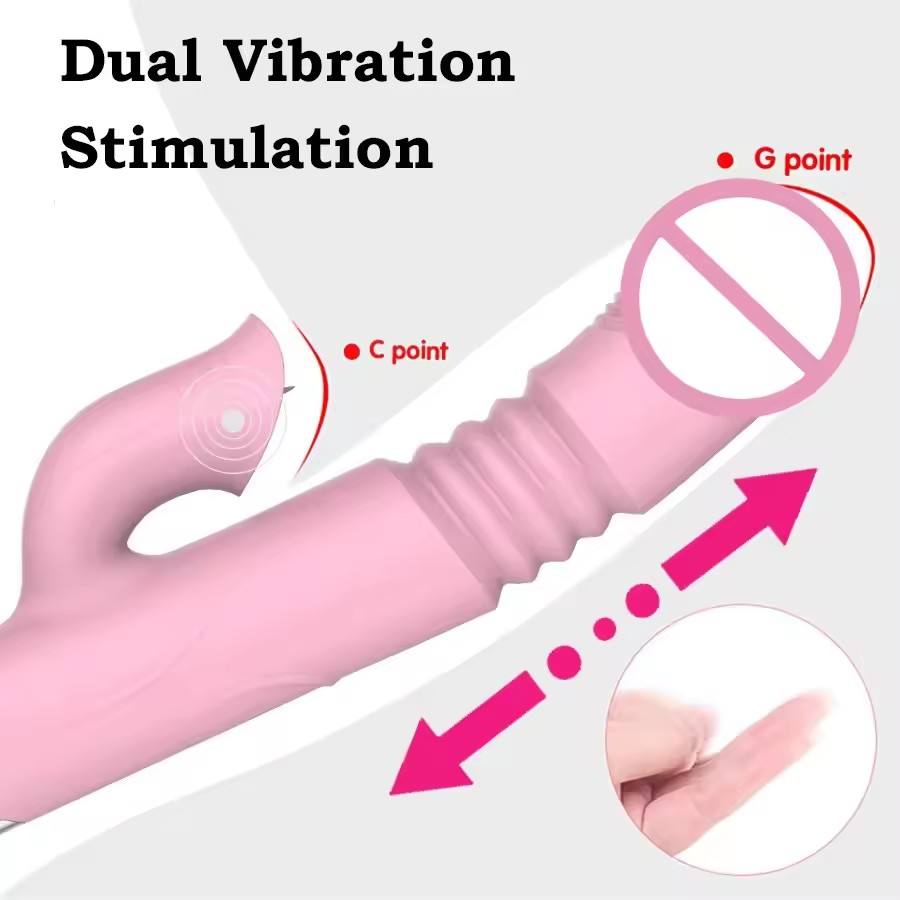 Vibromasseur réaliste à triple stimulation télescopique chauffant avec logo personnalisé