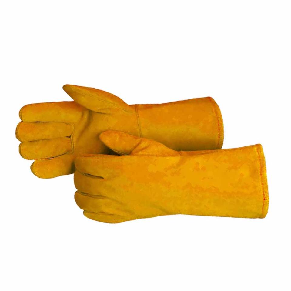 Gants de soudage en cuir de vachette pleine fleur robustes avec logo personnalisé, résistants à la chaleur et aux étincelles, pour la lutte contre les incendies, la construction et le barbecue