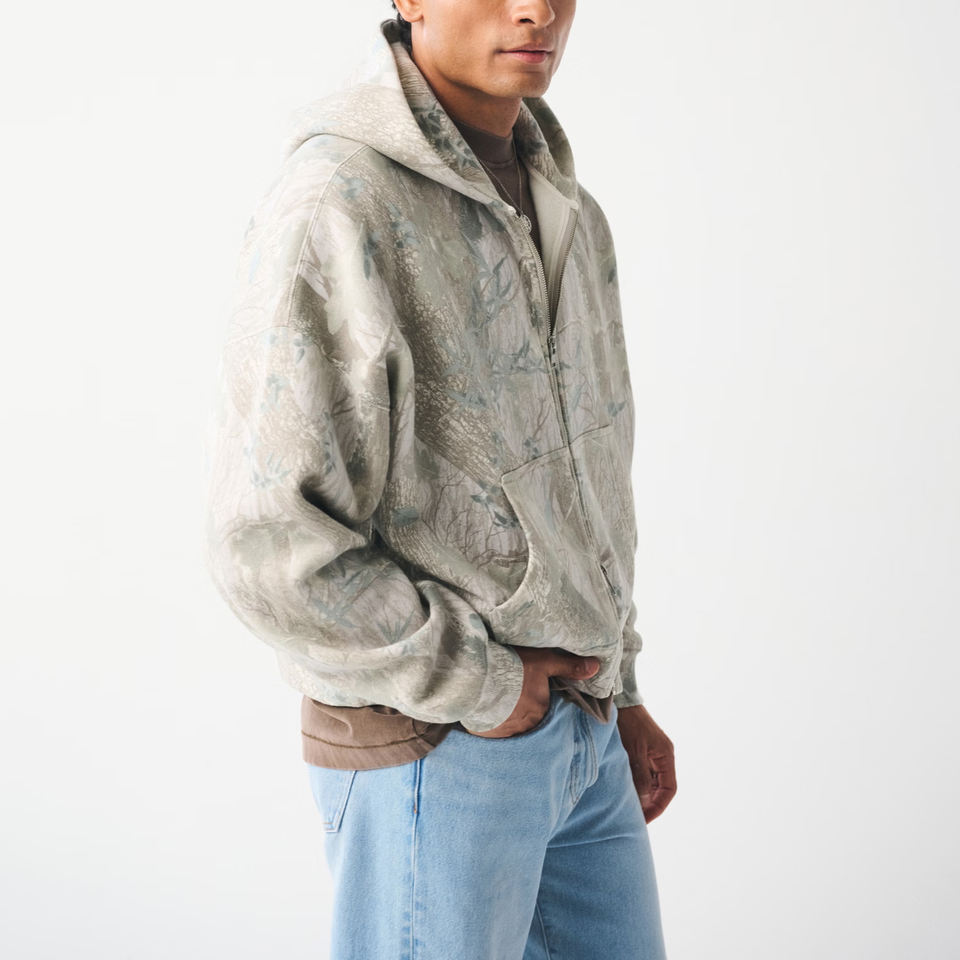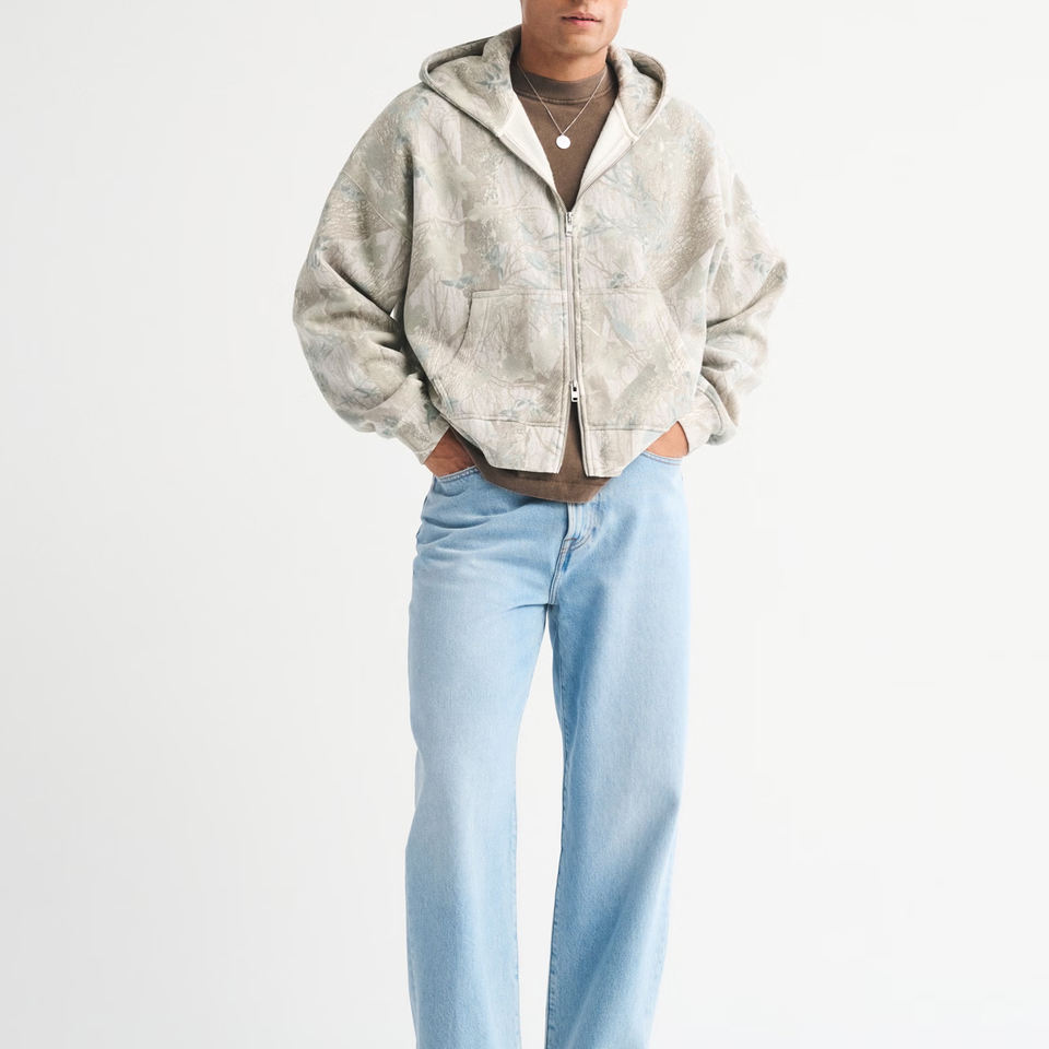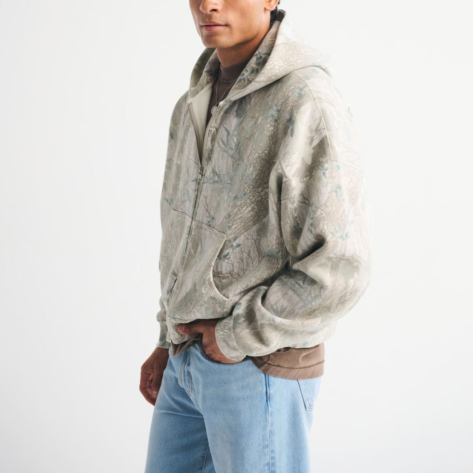 Sweat à capuche entièrement zippé en coton épais 340 g/m² avec logo personnalisé, coupe oversize, épaules tombantes, respirant, hiver, court, 2 pièces