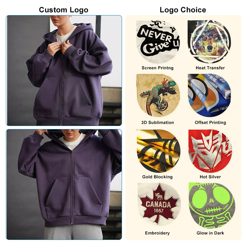 Logo personnalisé, broderie 3D de haute qualité, imprimé, fermeture éclair, surdimensionné, lourd, doublé, tricoté, écologique, épaules tombantes, pour homme
