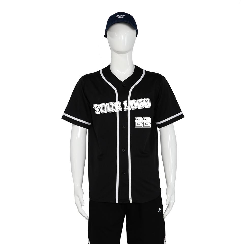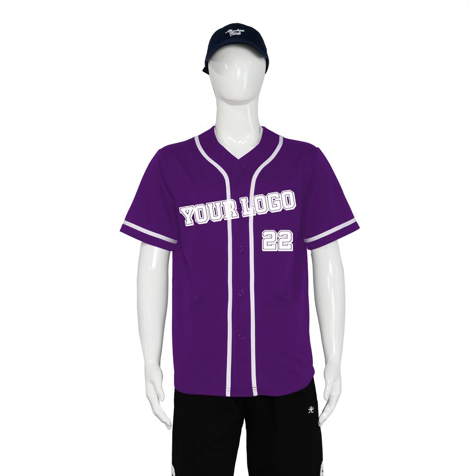 Maillot de baseball personnalisé de haute qualité, type boutonné, léger, court, respirant, confortable, séchage rapide, imprimé par transfert thermique
