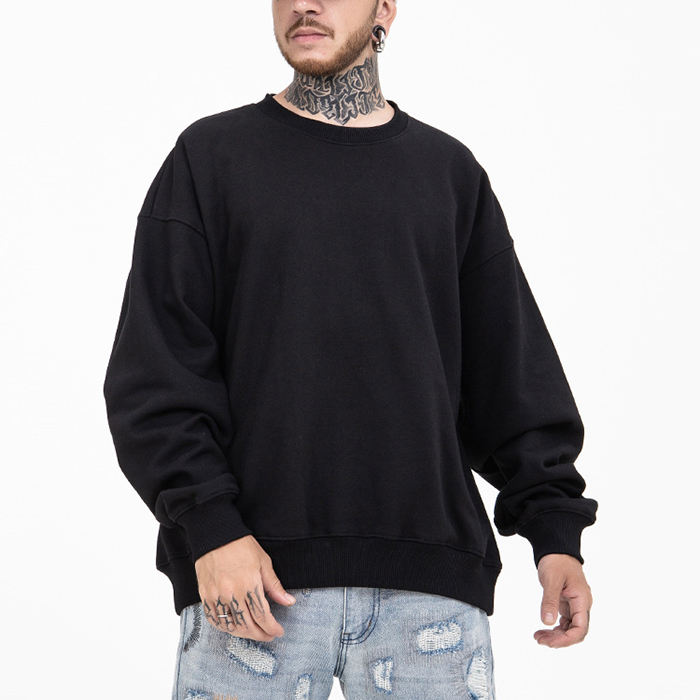 Sweat-shirt à col rond ample et court pour homme, en coton 100% de haute qualité, 600 g/m², lavé à l'acide, avec logo personnalisé