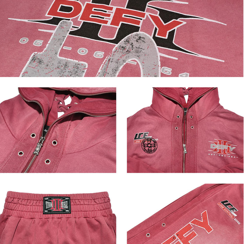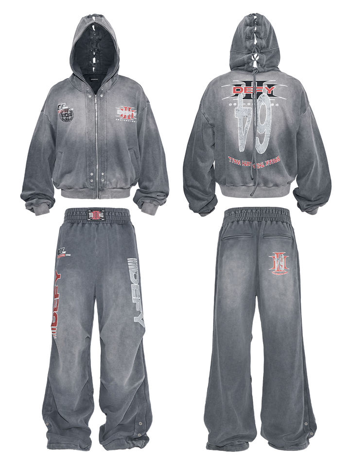 Ensemble de survêtement streetwear hiver en coton 100% avec logo personnalisé, sweat à capuche et pantalon de survêtement respirants, de haute qualité, unis, effet vintage délavé soleil