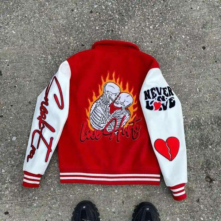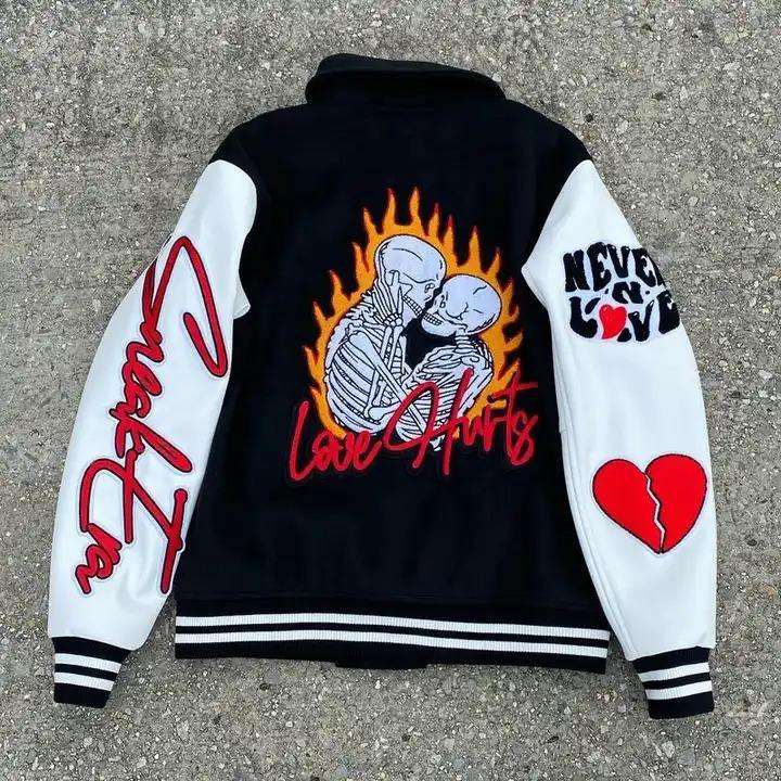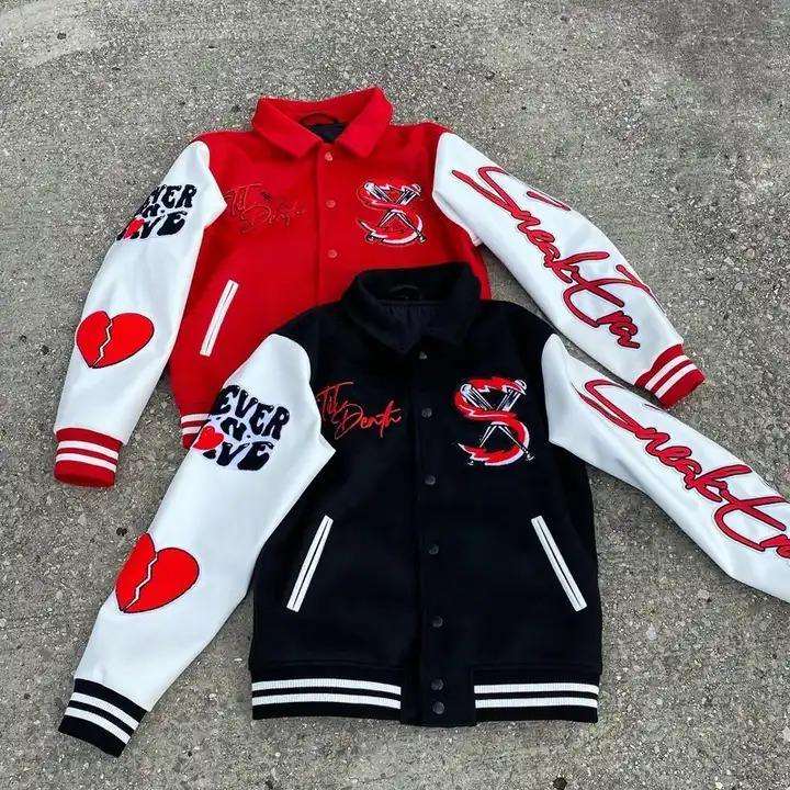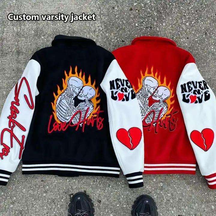 Blouson universitaire en cuir pour homme, style streetwear, avec logo personnalisé, broderie chenille de haute qualité, patchwork, hiver, col montant