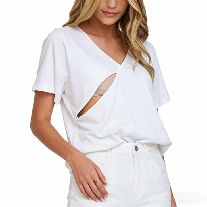 T-shirt d'allaitement pour femme en mélange de coton de haute qualité avec logo personnalisé, col en V, décontracté, ample, doux, respirant, fermeture éclair invisible