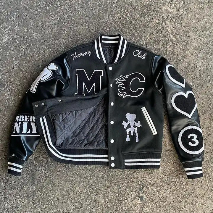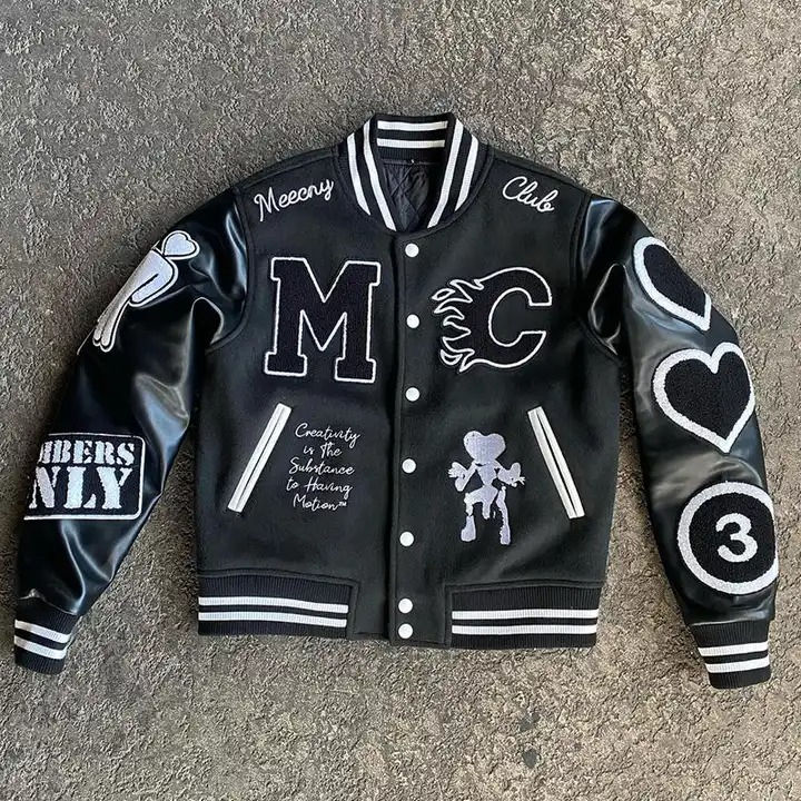 Veste universitaire en satin de haute qualité à logo personnalisé veste Letterman à broderie lourde pour hommes