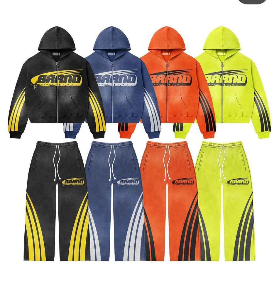 Ensemble pantalon de survêtement et jogging à capuche en broderie éponge de haute qualité avec logo personnalisé Survêtement avec fermeture éclair et lavage à l'acide pour hommes