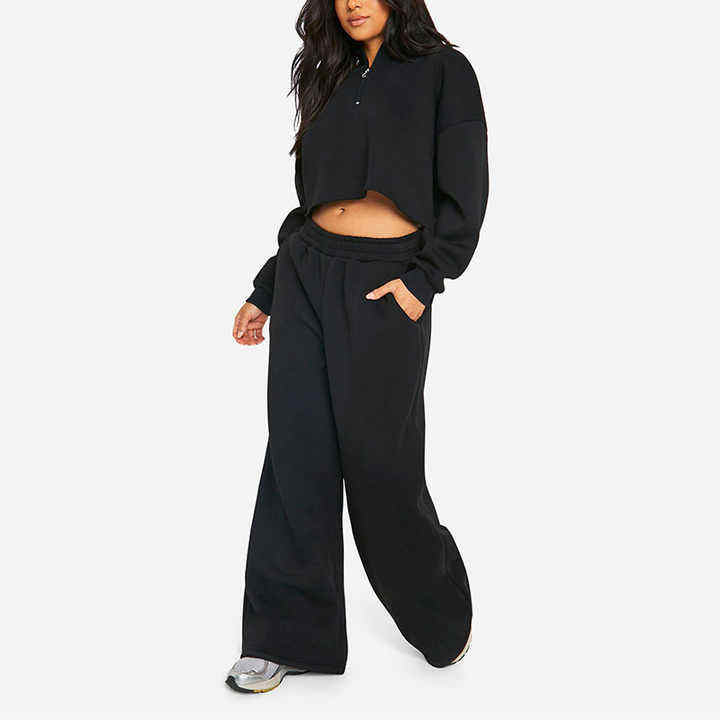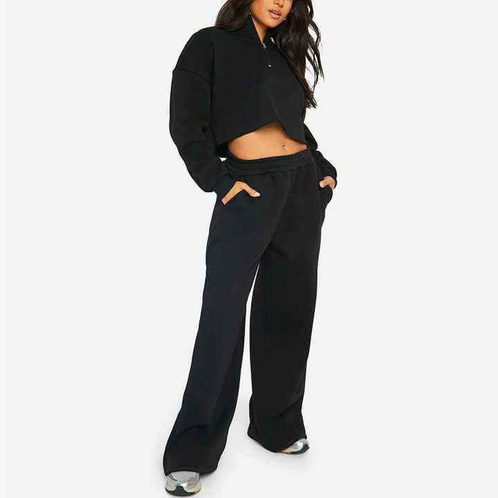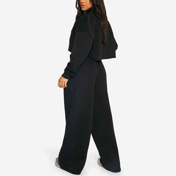 Ensemble de survêtement décontracté en molleton de coton de haute qualité avec logo personnalisé pour femme, comprenant un crop top, un pantalon de jogging et un sweat à capuche (2 pièces)