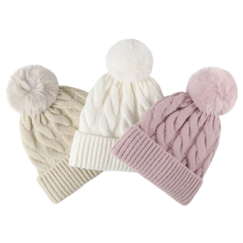 Chapeau en tricot jacquard de haute qualité avec logo personnalisé, pompon, bonnet chaud en tricot épais, chapeau d'hiver à rayures