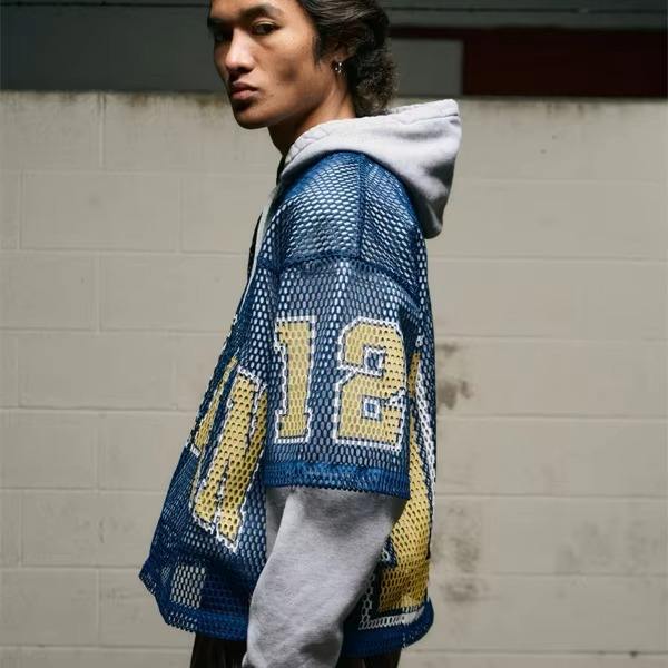 Logo personnalisé Maillot de haute qualité pour hommes Boxy Football Sérigraphie Recadrée Séchage rapide Col en V Maille Maillot transparent