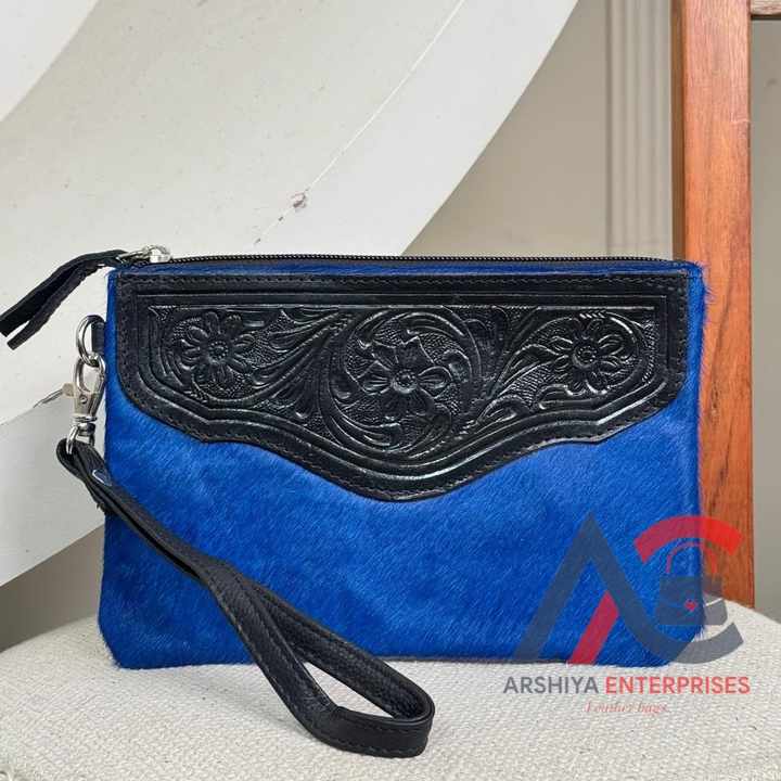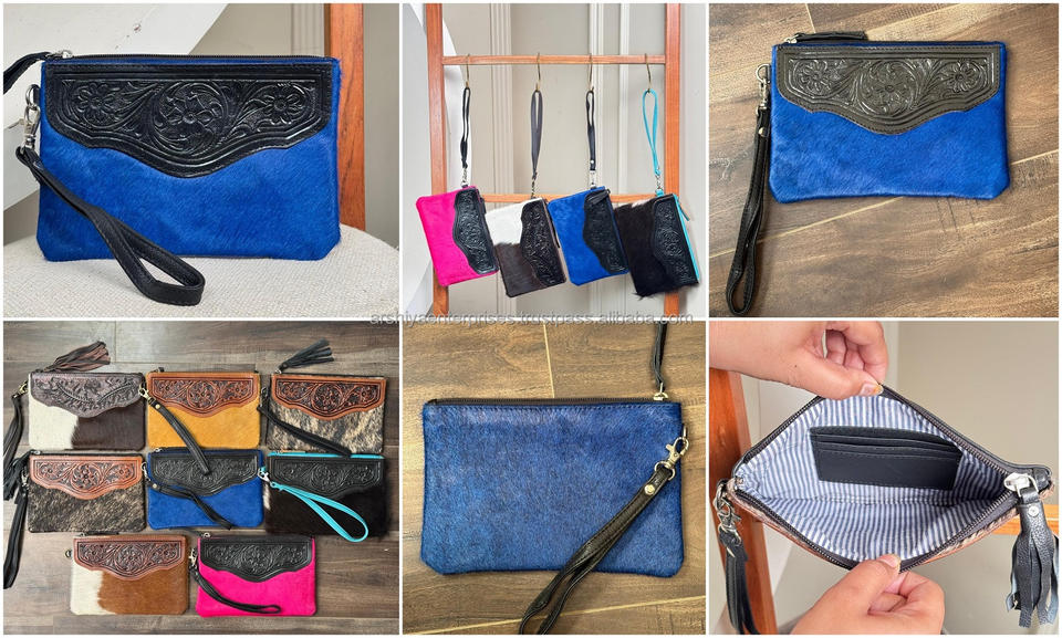 Portefeuille pour femme en cuir usiné à la main de haute qualité avec logo personnalisé Pochette de bracelets en cuir de vachette bleu de créateur de mode