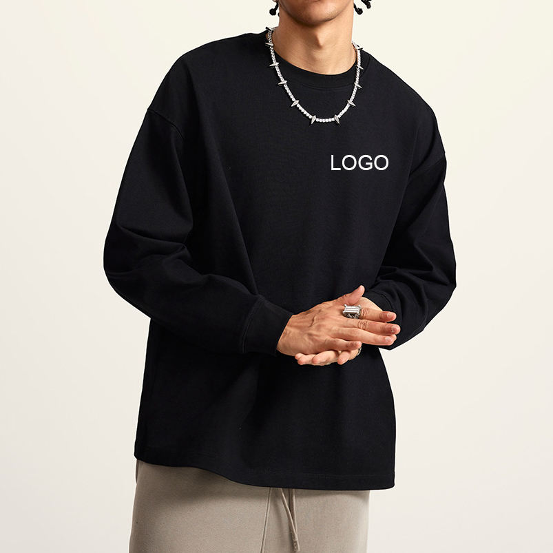 T-shirt à manches longues pour homme, en coton 100%, 240GSM, uni, surdimensionné, streetwear, avec logo personnalisé, de haute qualité