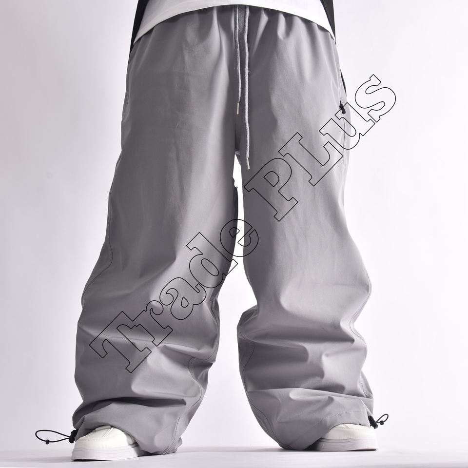 Pantalon de ski unisexe grande taille personnalisé avec logo, taille élastique ample, imperméable, coupe-vent, fermeture à cordon, imprimé