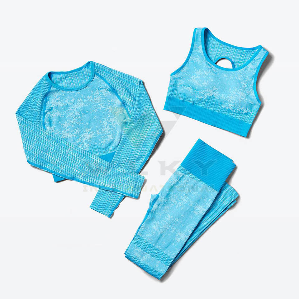 Logo personnalisé taille haute Gym Fitness Active Wear 3 pièces ensemble pour les femmes respirant sans couture pantalons de yoga avec motif solide