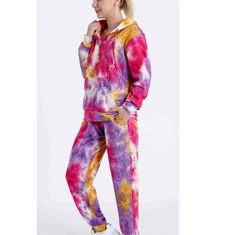 Sweat à capuche et pantalon de survêtement avec logo personnalisé Ensemble de jogging pour femmes Survêtement 2 deux pièces Survêtements tie-Dye à vendre