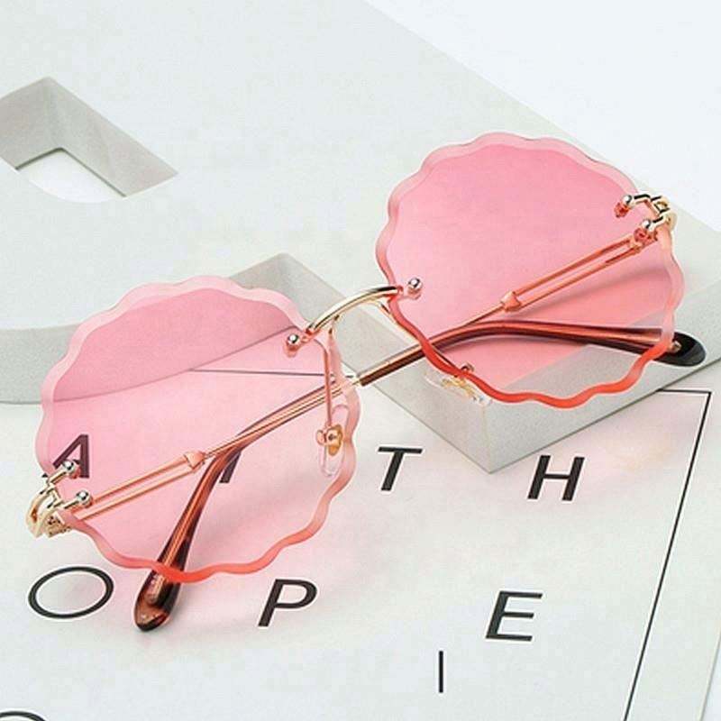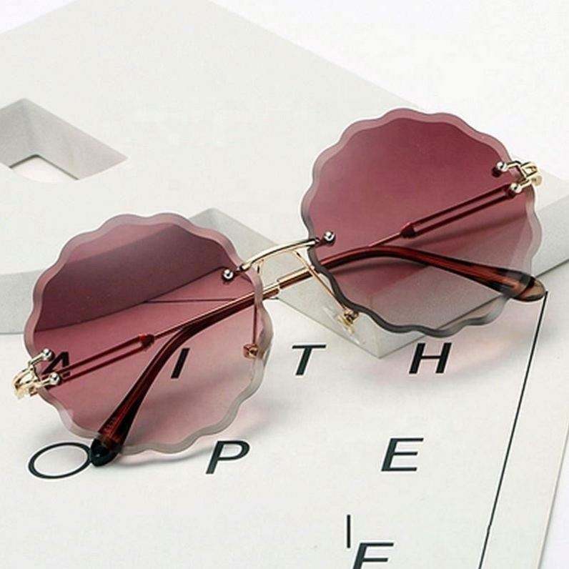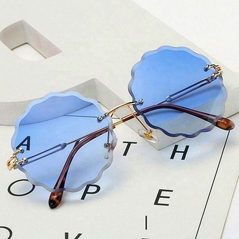 Lunettes de soleil rondes en métal tendance avec logo personnalisé, lunettes de soleil dégradées pour femmes, lunettes de soleil sans monture en forme de fleur pour femmes