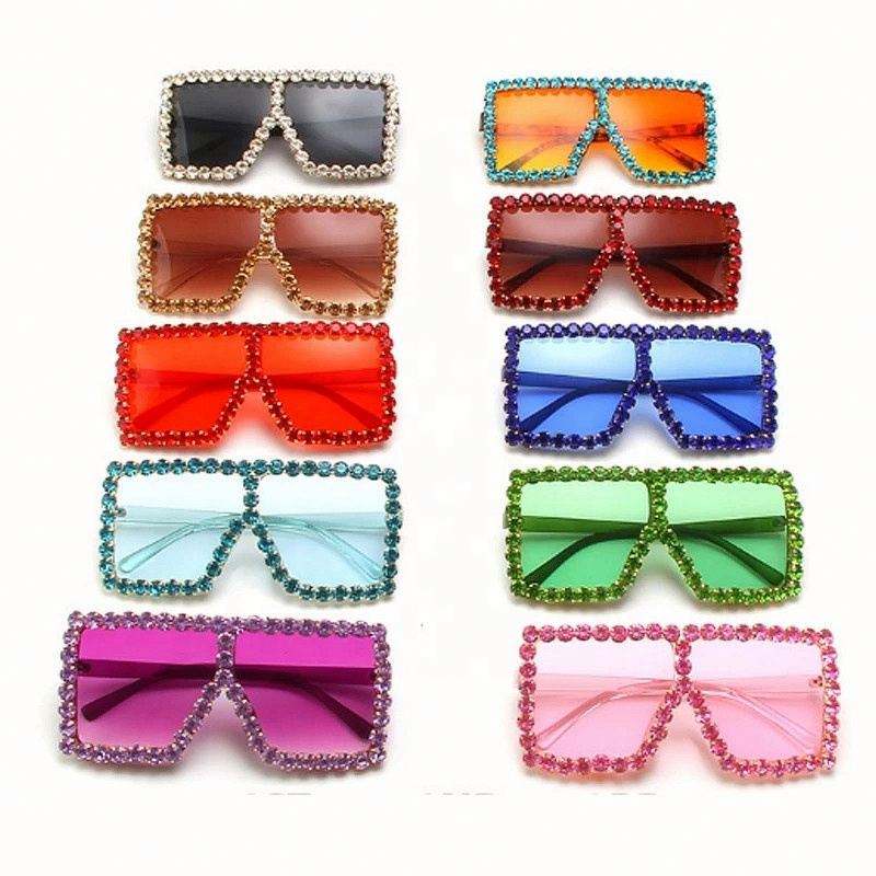 Lunettes de soleil carrées élégantes et tendance avec logo personnalisé, monture large, strass, protection UV400, pour femmes, vente en gros