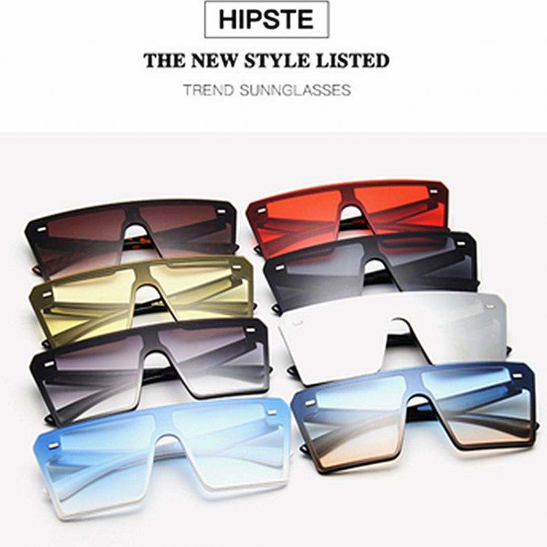 Lunettes de soleil vintage à dégradé avec logo personnalisé, très tendance, surdimensionnées, carrées, pour femmes, à dessus plat