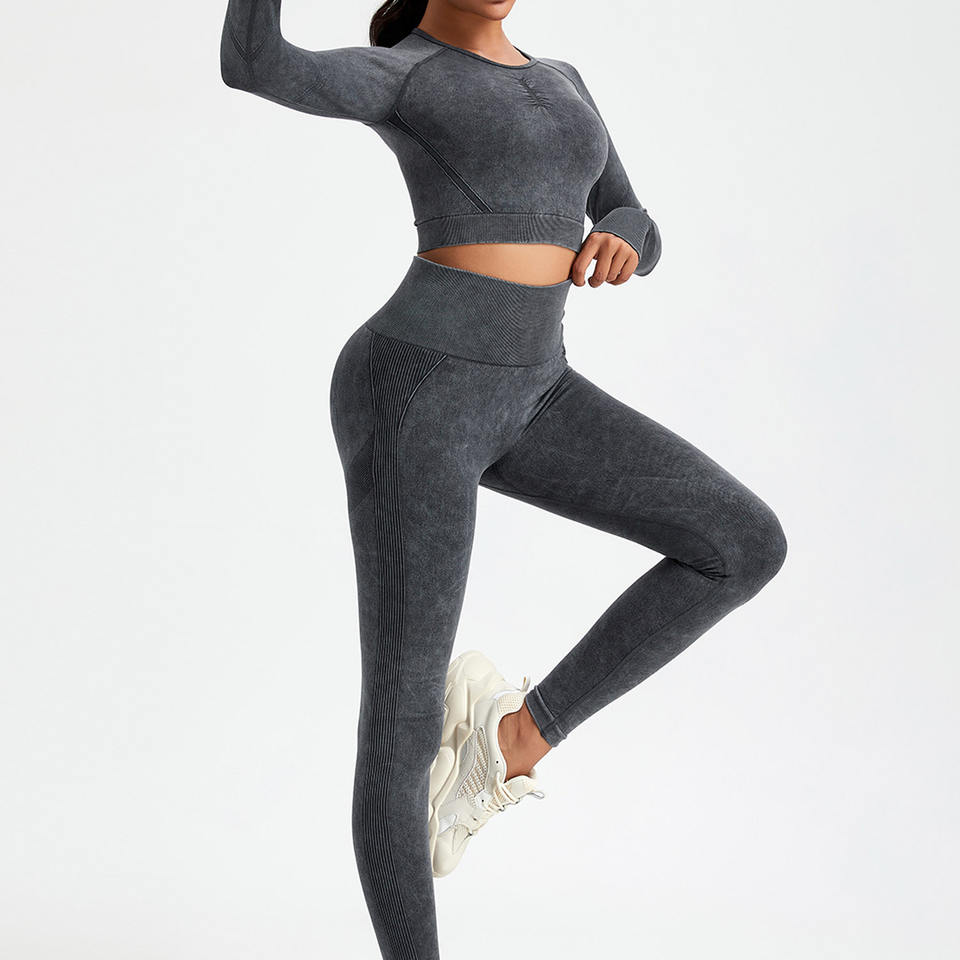 Ensemble de vêtements de sport pour femmes, couleur unie tendance, avec logo personnalisé, haut de yoga, tenue de sport, ensemble de yoga pour femmes