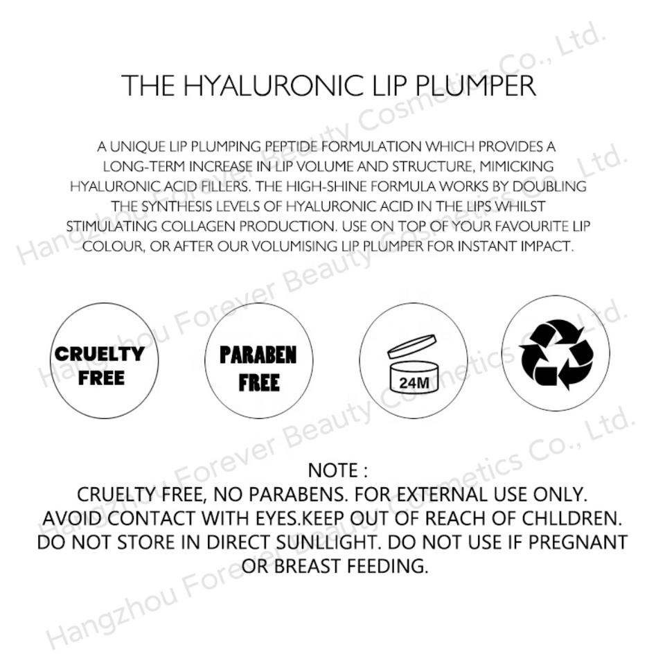 Logo personnalisé Acide hyaluronique Rehausseur de Lèvres Volume Visible Lisse Brillant Lèvres Repulpant