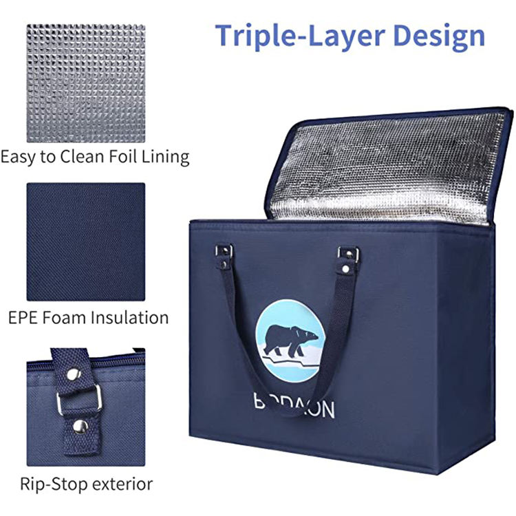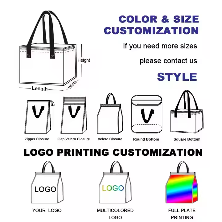 Sac isotherme portable personnalisé avec logo, imperméable, en non-tissé, en aluminium, pour la livraison de nourriture et de café