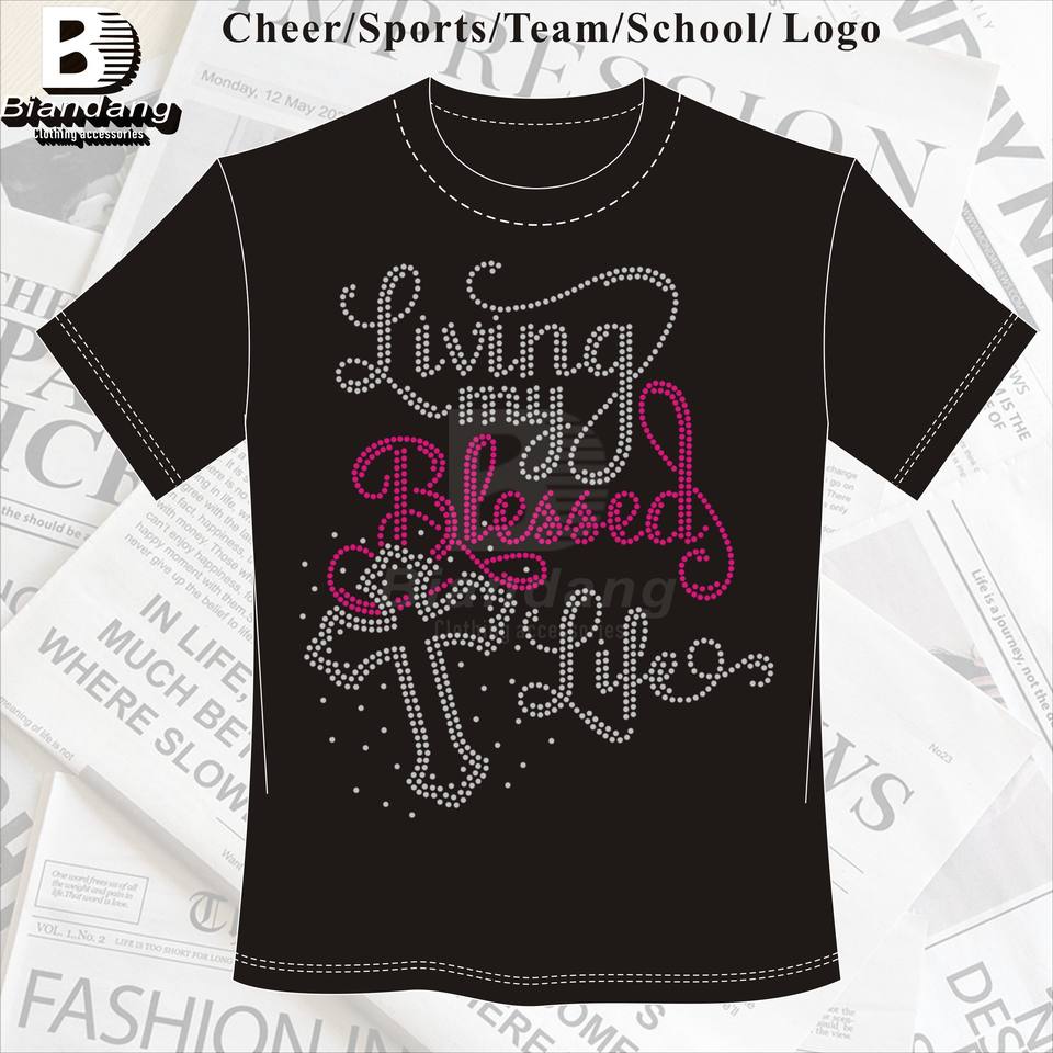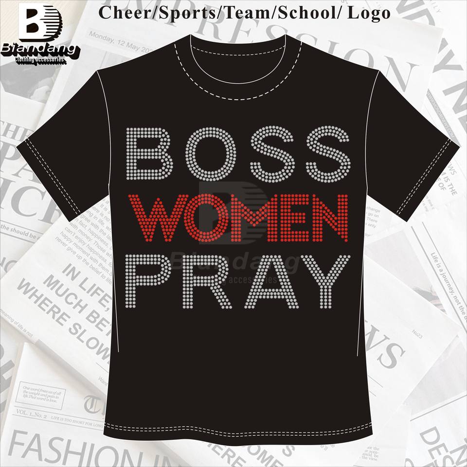 Feuilles de transfert de strass thermocollantes avec logo personnalisé pour vêtements Strass de maman bénie en croix de qualité supérieure pour chemise