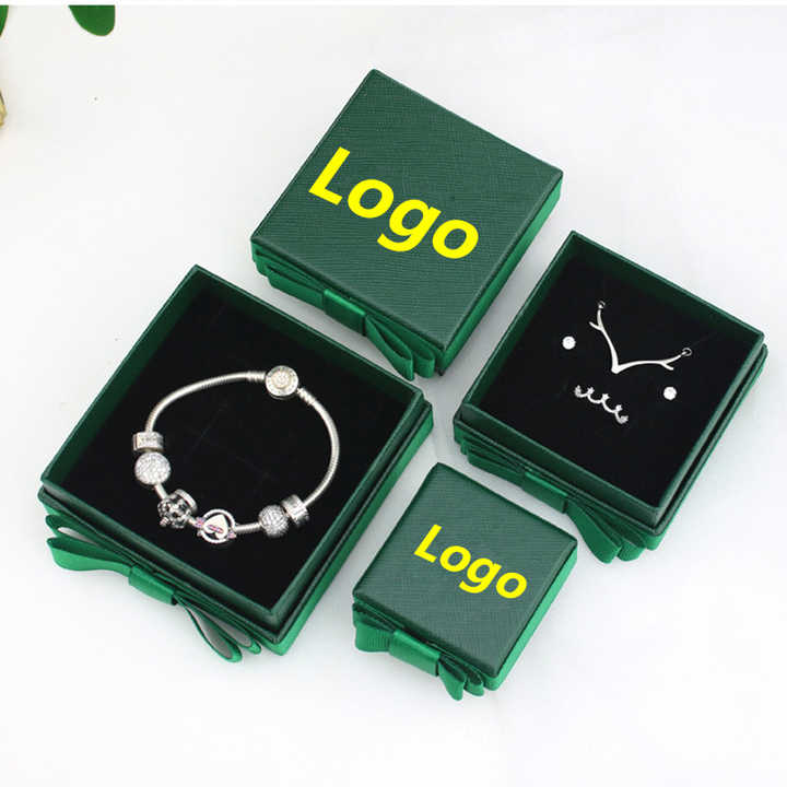 Boîte à bijoux personnalisée avec logo, coffret cadeau à tiroir coulissant avec ruban, emballage de bijoux en éponge verte pour collier, boucles d'oreilles, bracelet
