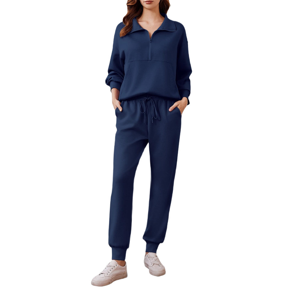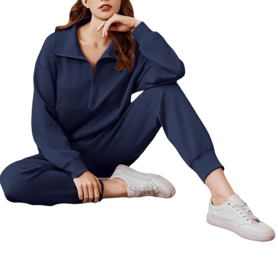 Ensemble de survêtement personnalisé avec logo, deux pièces, veste à demi-zip et pantalon de jogging, style confortable pour l'entraînement physique