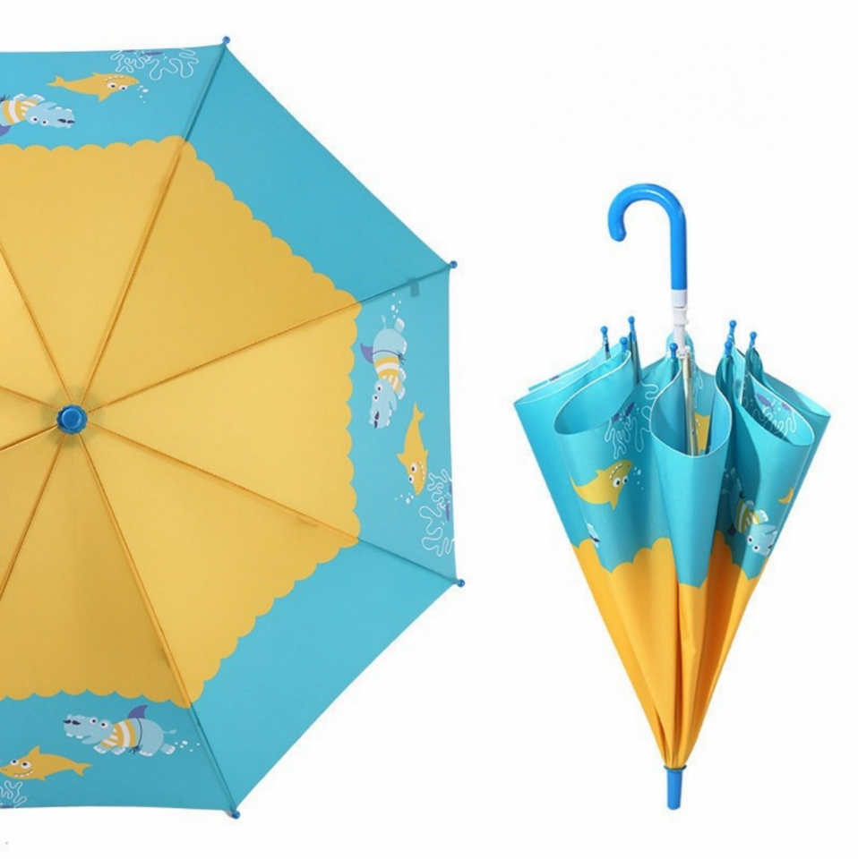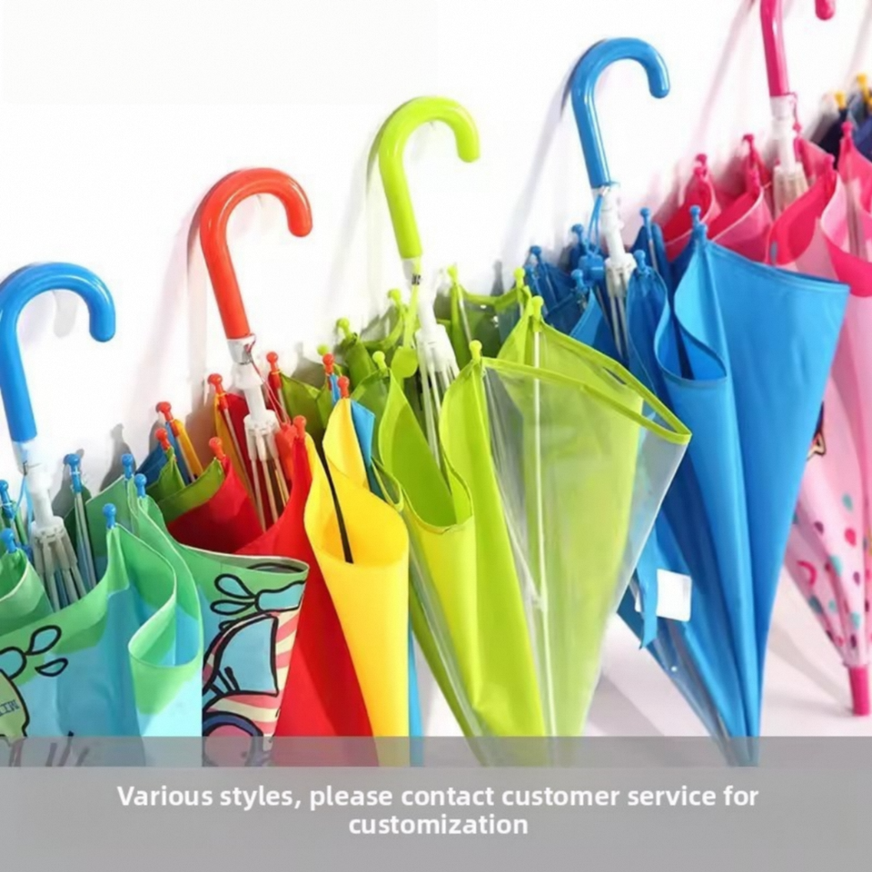 Parapluie droit pour enfants avec logo personnalisé, sûr et rond, avec baleines en fibre de verre résistantes au vent, imperméable en PVC et protection UV, idéal pour les cadeaux