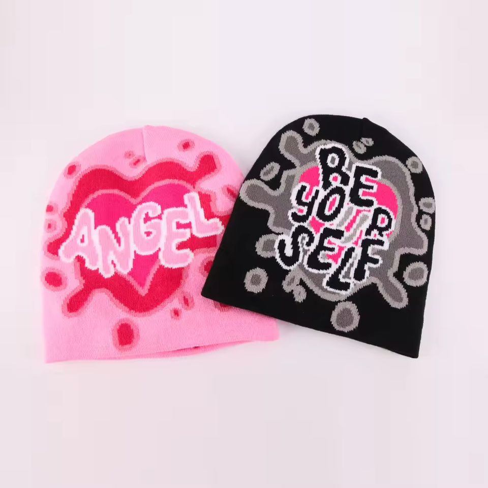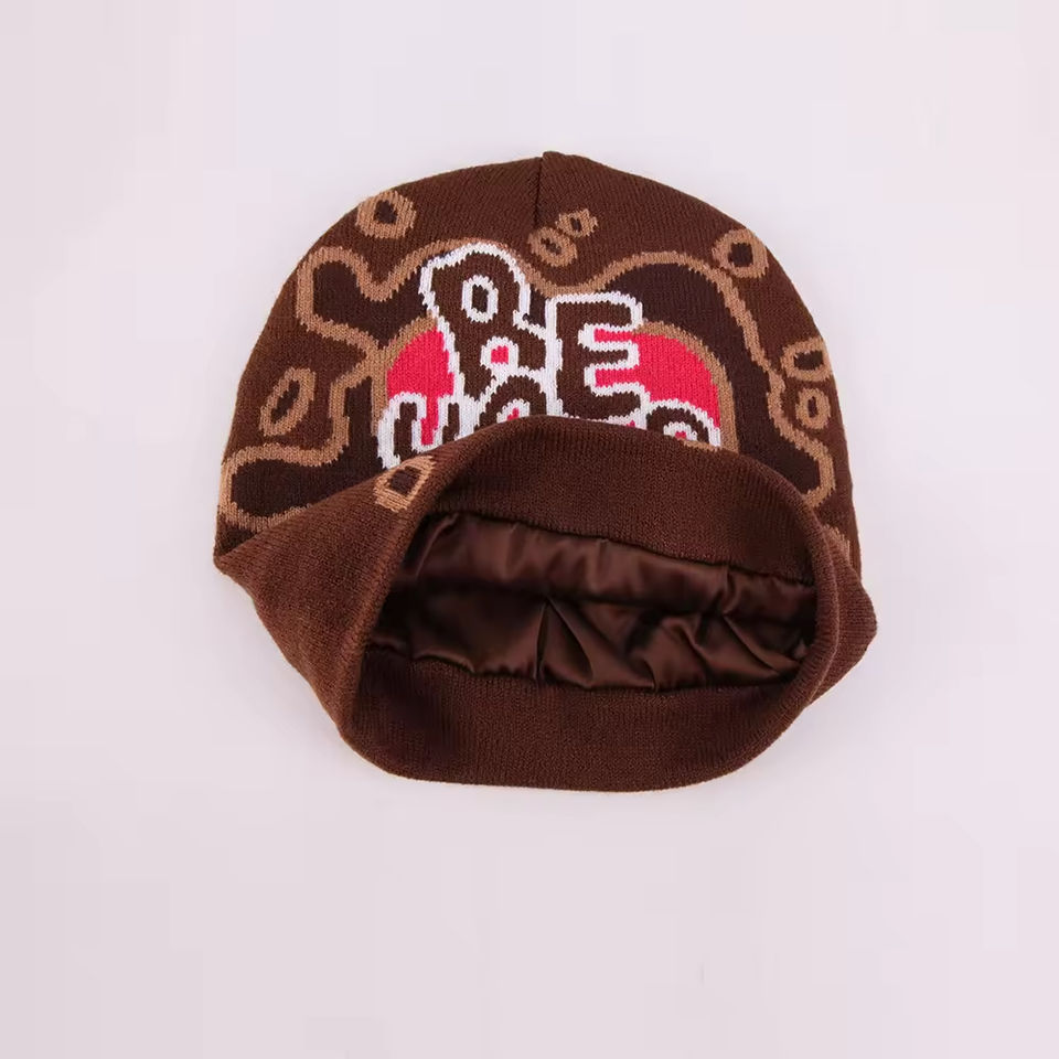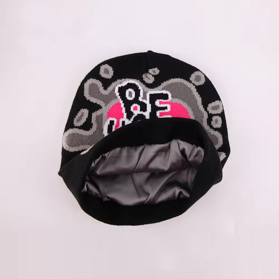 Bonnet court sans revers en tricot avec logo personnalisé et doublure en satin