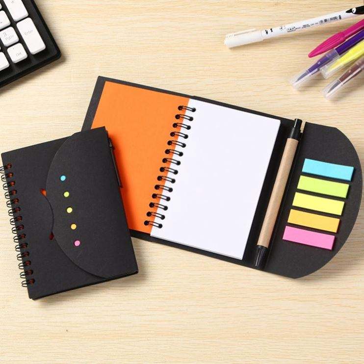 Carnet à spirales en kraft avec logo personnalisé et notes adhésives, ensemble de blocs-notes multifonctionnels pour le bureau, l'école et les cadeaux promotionnels