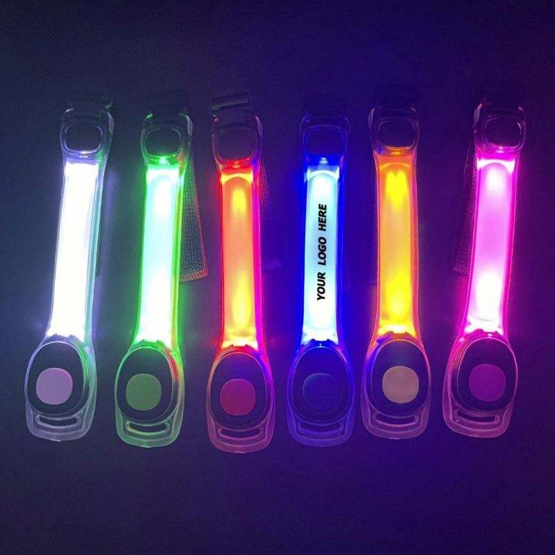 Bracelet lumineux LED personnalisé avec logo pour la course nocturne, brassard de sécurité lumineux en PVC pour enfants, bande réfléchissante promotionnelle pour l'extérieur