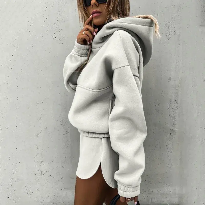 Ensemble 2 pièces pour femmes avec logo personnalisé Survêtement en coton à manches longues Sweat à capuche Short