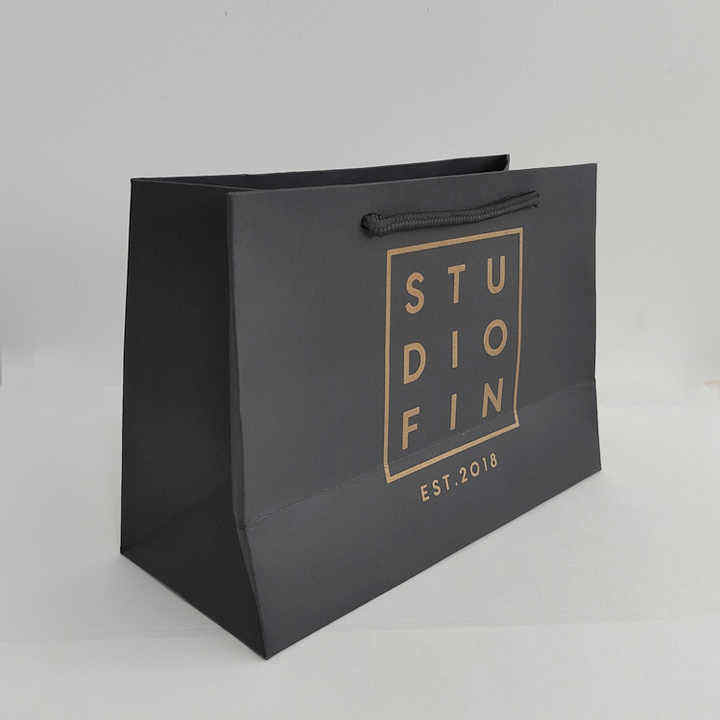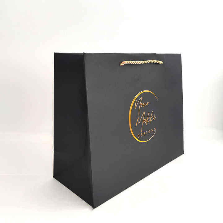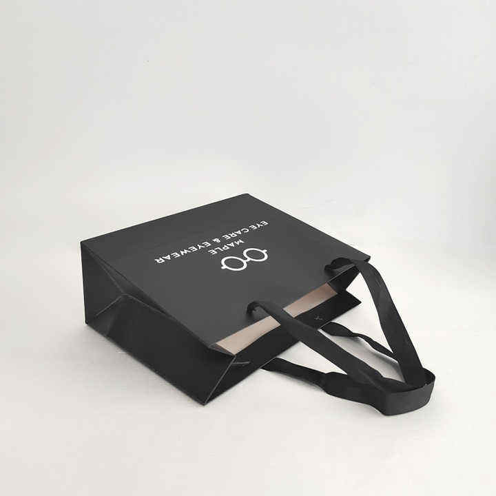 Grand fourre-tout à provisions en papier laminé noir mat avec logo personnalisé Sacs de produits promotionnels pour magasin de vêtements avec propre logo