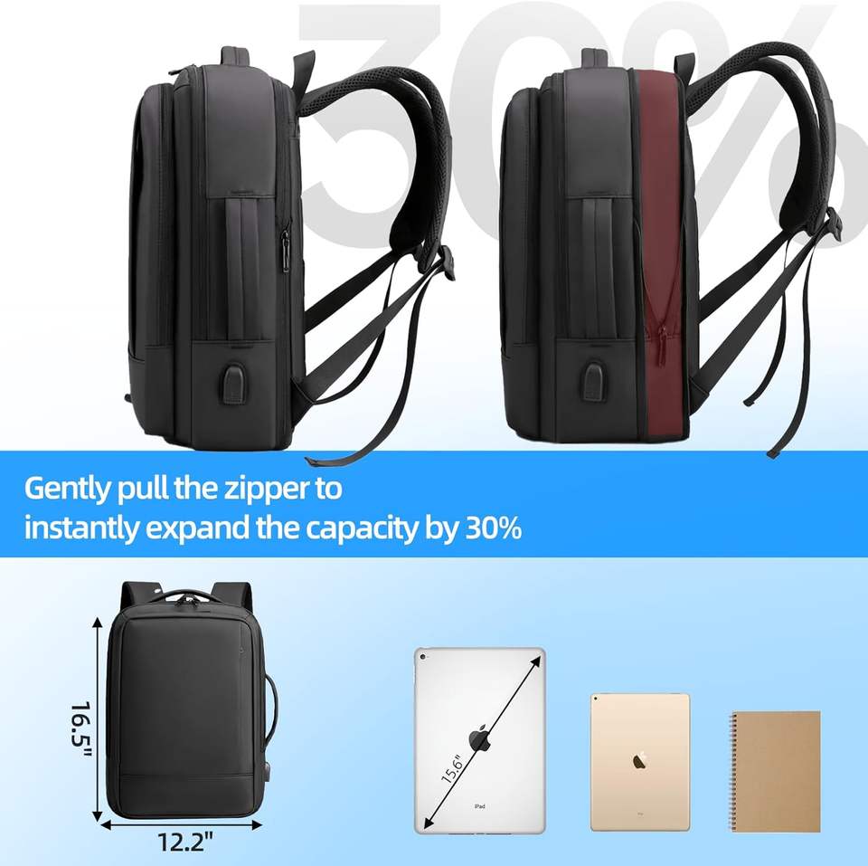 Sac à dos de voyage extensible grande capacité avec logo personnalisé pour ordinateur portable, idéal pour le travail et les affaires, pour hommes et femmes