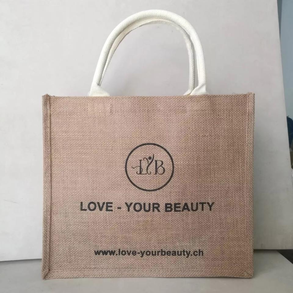 Sac fourre-tout en jute de grande capacité avec logo personnalisé sac de plage imperméable et pliable pour femmes sac à main de voyage réutilisable pour cadeau de mariage