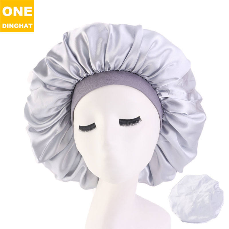 Casquette de sommeil en Satin de très grande taille avec Logo personnalisé Bonnet élastique en soie pour femmes