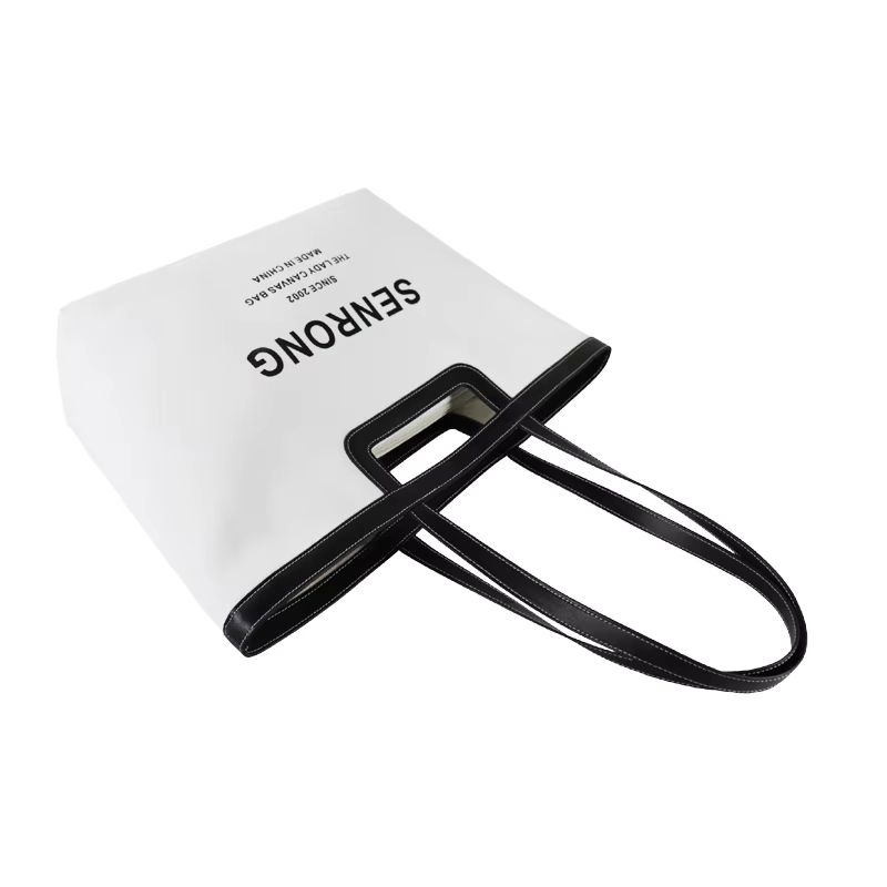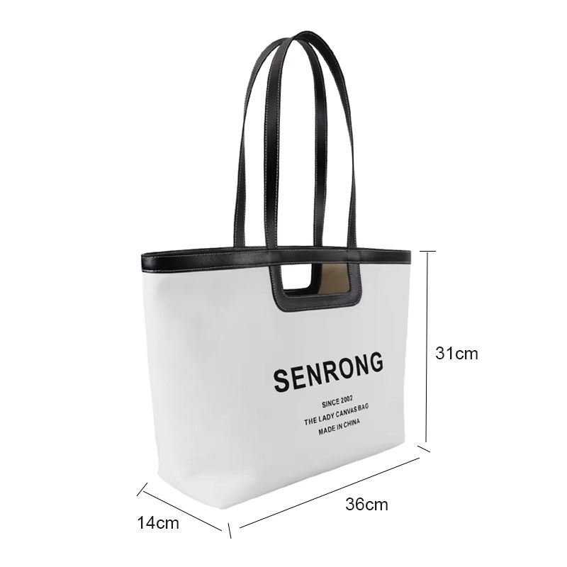 Sac fourre-tout en toile avec poignée en cuir personnalisée, grand format (>50cm), fermeture à double fermeture éclair, motif lettres, petite pochette