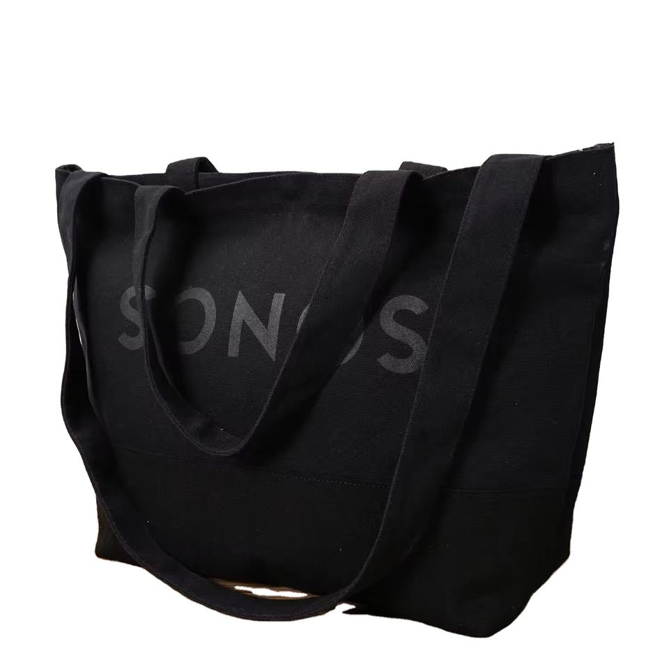 Sac fourre-tout en toile de coton pour femme avec logo personnalisé et motif lettres, longue poignée, idéal pour le week-end, avec poches de rangement en toile pour le shopping