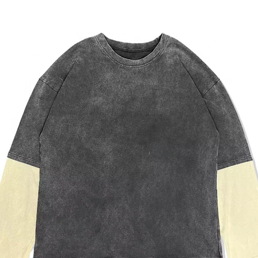 T-shirt Homme Oversize à Double Manches Effet Délavé Personnalisable avec Logo – Tendance et Nouveauté