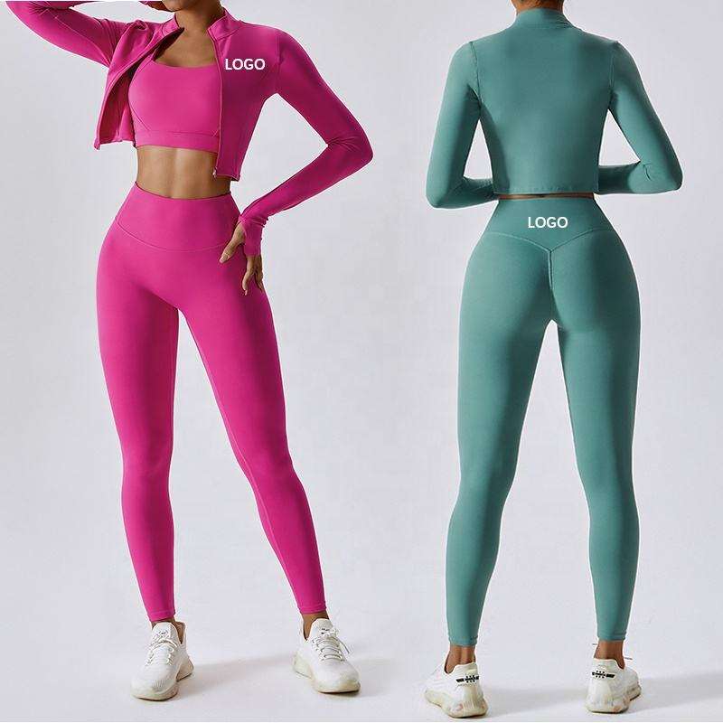 Logo personnalisé Top court à manches longues et pantalon à taille élastique Ensemble de vêtements de gym Ensembles de yoga pour femmes