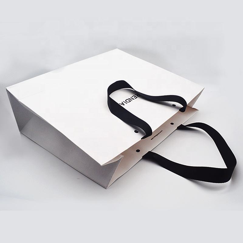 Sac en papier cadeau de luxe avec logo personnalisé Sac en papier à provisions avec poignée en ruban
