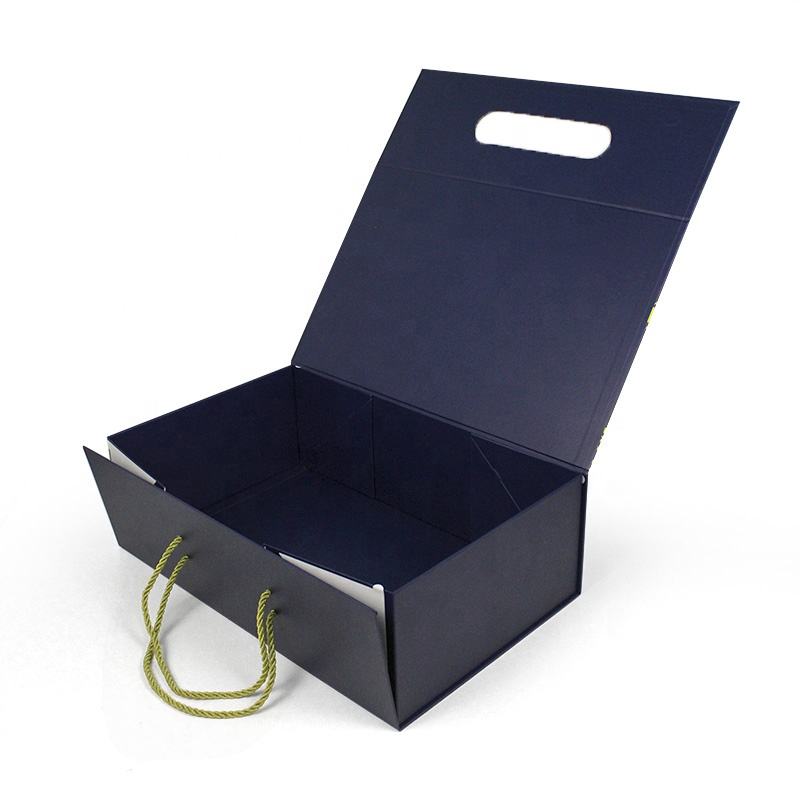 Coffret cadeau magnétique de luxe bleu marine mat avec logo personnalisé et ensemble de sacs cadeaux
