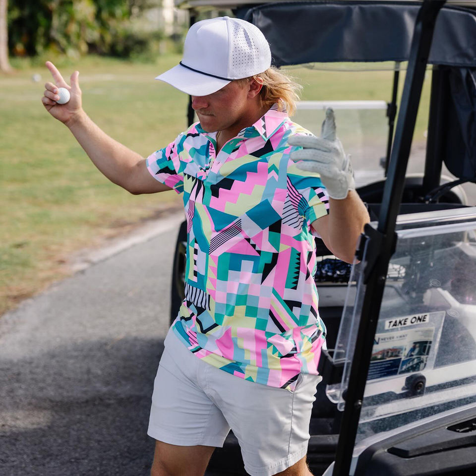T-shirt de golf pour homme de luxe avec logo personnalisé pour polos, extensible dans les 4 sens, 92% polyester, 8% élasthanne, motif imprimé surdimensionné