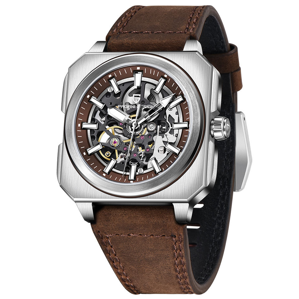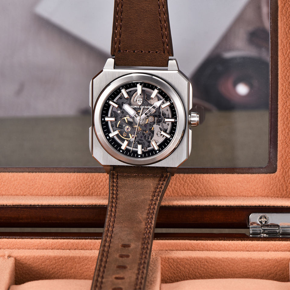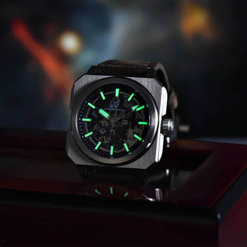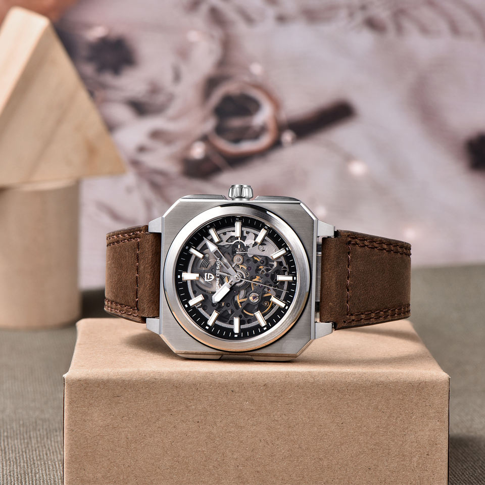 Montre mécanique automatique squelette de luxe pour homme avec cadran et logo personnalisé
