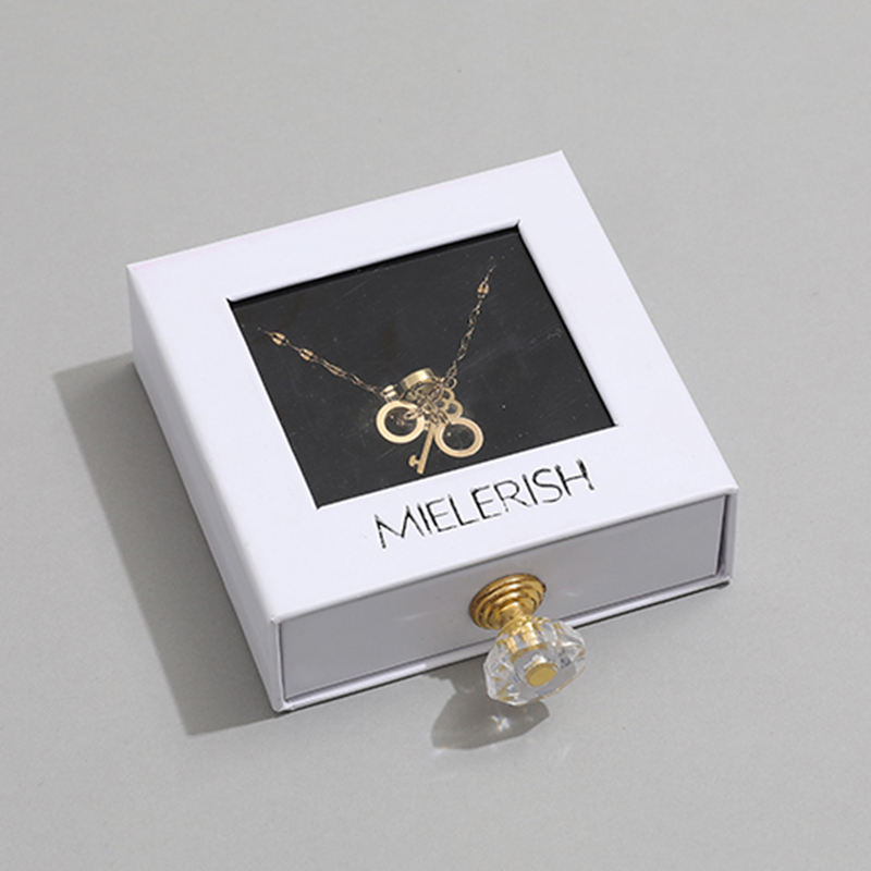 Boîte à bijoux rose de luxe avec logo personnalisé avec fenêtre transparente rangement à tirer en satin à l'intérieur pour cadeaux et présentoirs