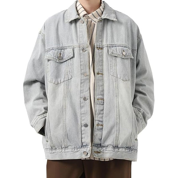 Veste en jean unisexe avec logo personnalisé, col montant surdimensionné, logo frontal, respirante, matelassée, vintage, streetwear, vente en gros pour boutiques