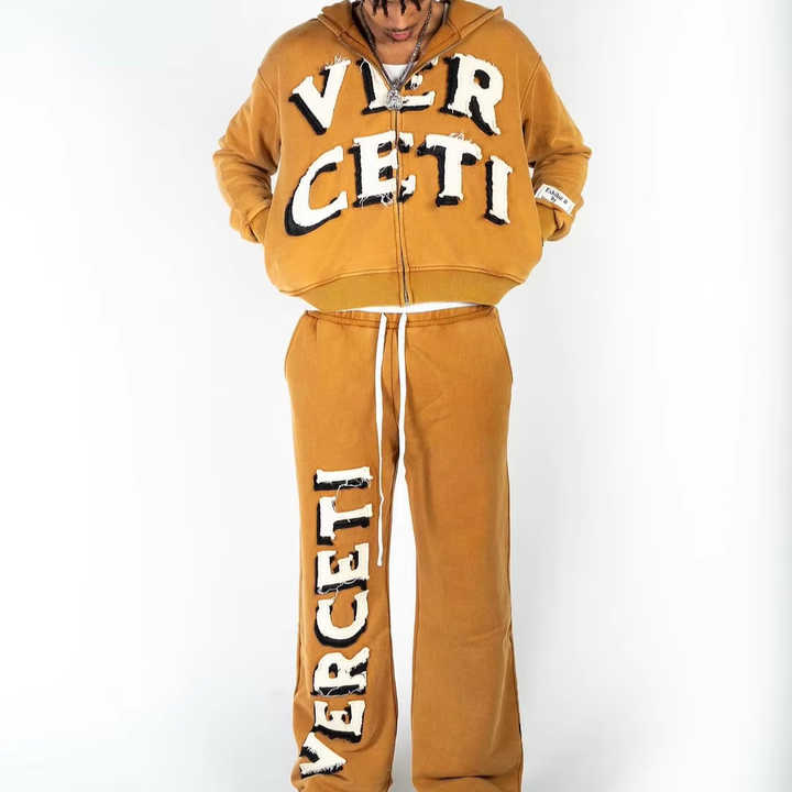 Survêtement pour homme avec logo personnalisé, ensemble de survêtement, jogging, ensemble vintage, sweat-shirts à fermeture éclair intégrale, survêtement délavé à l'acide