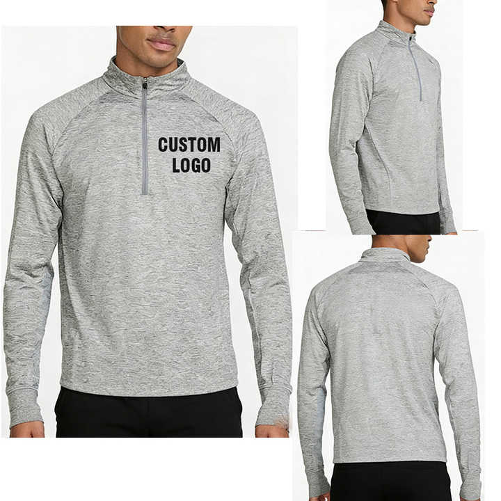 Sweat-shirt à fermeture éclair 1/4 pour homme avec logo personnalisé, extensible, doux, pour la salle de sport, vêtements de sport, performance, léger, pull à fermeture éclair 1/4