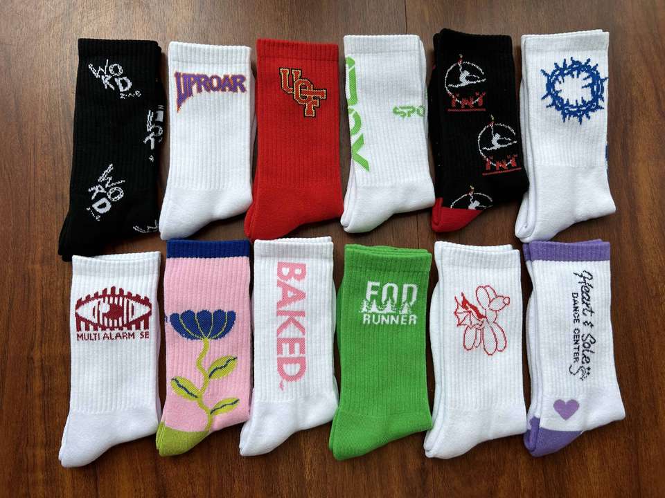 Chaussettes de sport en coton pour hommes avec logo personnalisé, motif dessin animé, respirantes, légères, absorbant la transpiration, idéales pour l'automne